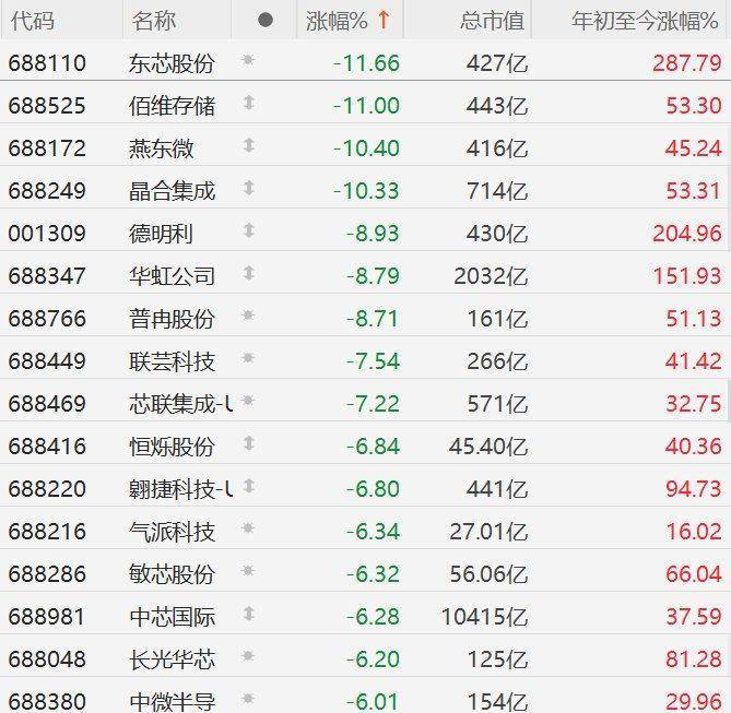 A股市场芯片股集体重挫,其中,东芯股份、佰维存储跌超11%,燕东微、晶合集成跌超10%,德明利、华虹公司、普冉股份跌超8%炒股配资理财,联芸科技、芯联集成跌超7%炒股配资理财,恒烁股份、翱捷科技、气派科技、敏芯股份、中芯国际、长光华芯、中微半导跌超6%,中芯国际跌超5%。消息面上,10月9日,有投资者信用账户持有的中芯国际、佰维存储等股票两融折算率降为0,多家券商解释称中芯国际、佰维存储均因为静态市盈率大于300倍,折算率调整为0。有业内人士称,这是券商依据交易所规则开展的常态化操作,该规定自2016年起实施,并沿用至今,A股市场保持一致,并非只针对某个行业或者板块,也就是说A股市场静态市盈率超过300倍的两融股票,折算率都会调整为0。
